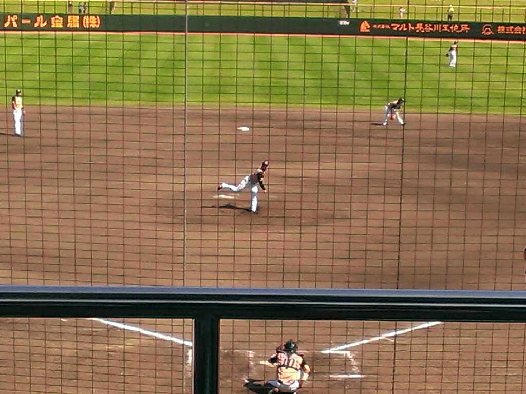 二塁塁審に当たって中前に転がりました。